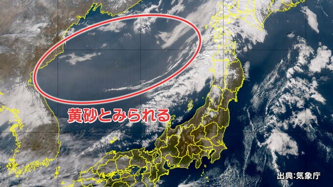 9日午前11時の気象衛星画像を見ると、日本海にはうっすらと茶色い部分が確認できるため、黄砂はすでに日本海に到達しているとみられます。