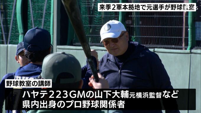 2024年シーズンからプロ野球2軍に参入するハヤテ223のGMに就任した山下大輔さんをはじめ、静岡県内出身の元プロ野球選手などによる野球教室が12月9日、静岡市で開かれました。