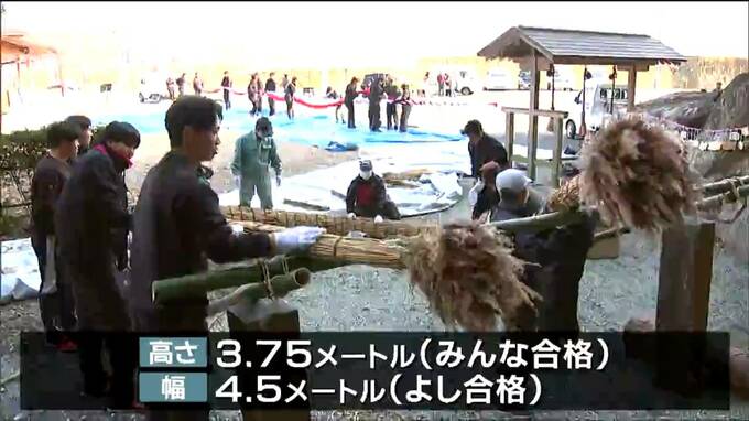 釣石神社には、氏子や学生ボランティアなどおよそ30人が集まり、ヨシを使った「茅の輪」を設置していきました。輪の大きさは高さが「みんな合格」の願いを込めて3・75メートル、幅は「良し合格」で4・5メートル。参拝に訪れた受験生たちは早速を輪をくぐり、心身を清めていました。