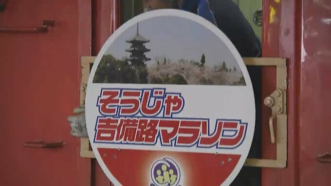 きょう(11日)からJR桃太郎線を走る「そうじゃ吉備路マラソン号」には、備中国分寺の写真とランナーをデザインしたヘッドマークが取り付けられてます。