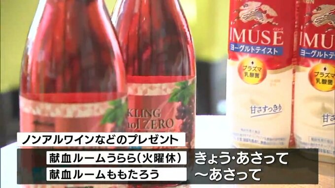 ワインなどのプレゼントは、あさって(13日)まで県内の献血ルームで予定されています。