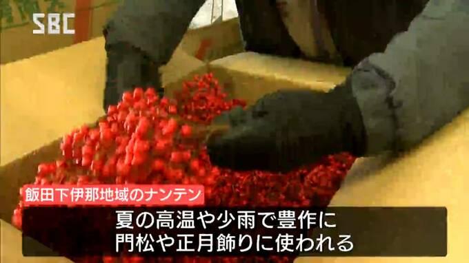正月飾りに使われるナンテンの出荷が長野県の飯田下伊那地域で最盛期を迎えています。