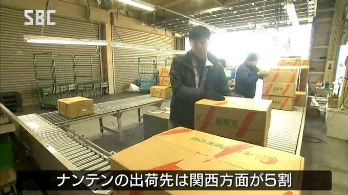 飯田下伊那のナンテンの出荷先は関西方面が5割、あとの5割が中京と関東方面だということです。