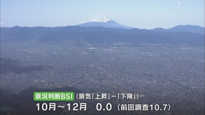 それによりますと、今年10月から12月までの景気について「上昇」と答えた企業から「下降」と答えた企業を引いた割合景況判断(BSI)は「0」で、前回調査の10.7から悪化しました。
