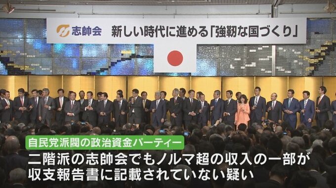 政治資金パーティーを巡っては、二階派の志帥会でもノルマを超えて集めた分の収入の一部が収支報告書に記載されていない疑いが出ています。