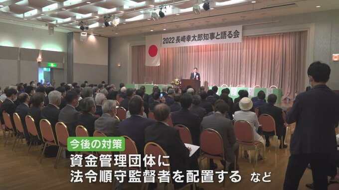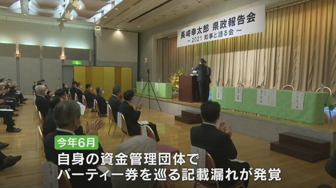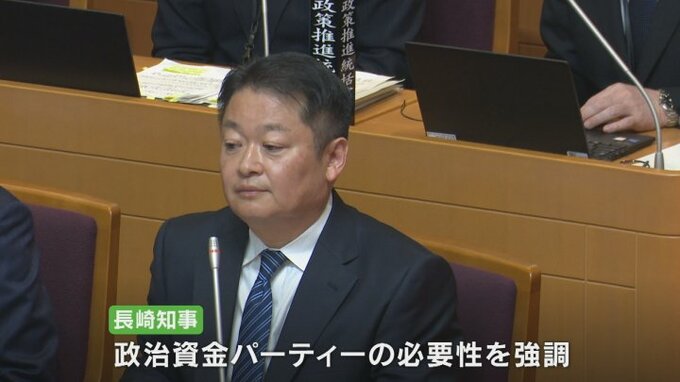長崎知事は政治資金パーティーの必要性を強調し、引き続き適正なルールのもと開催していく考えを示しました。