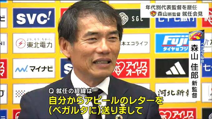 サッカーJ2ベガルタ仙台を新たに指揮する森山佳郎新監督の就任会見がきょう行われ、目指すチーム像と来シーズンの目標を語りました。
