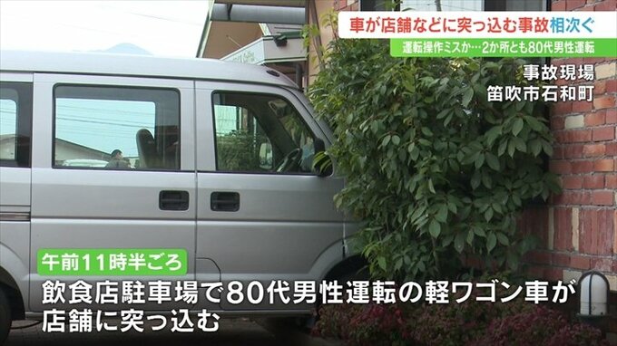 山梨県笛吹市と甲州市で、車が店舗などに突っ込む事故が相次ぎました。