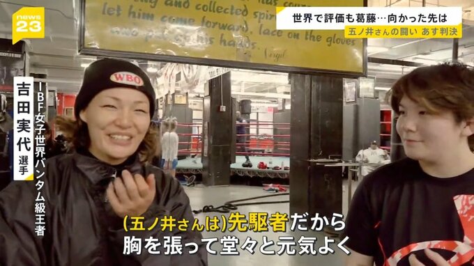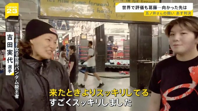 ここはモハメド・アリなど、数々の世界王者を生み出した名門ジム。自身も柔道というスポーツを生きがいとしている五ノ井さんが、このジムで世界王者として活躍する吉田実代選手を訪ねたのです。
