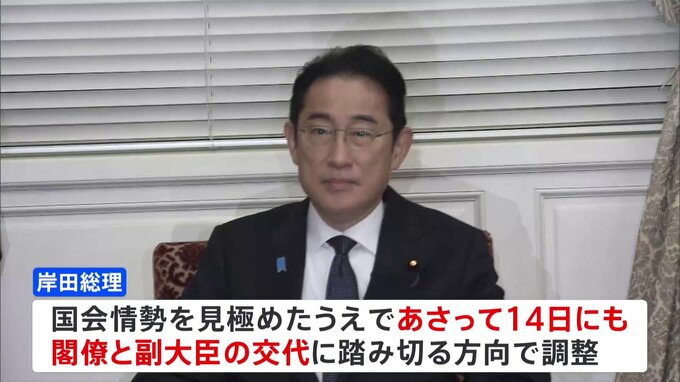 自民党・安倍派の政治資金をめぐる問題を受け、岸田総理は、安倍派の閣僚4人を交代させる人事をあさって14日にも行う方向で調整に入りました。政権内では安倍派に所属する閣僚・副大臣・政務官全員を交代させる案…