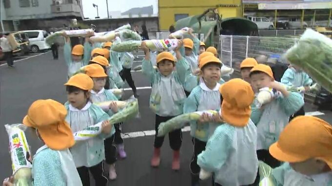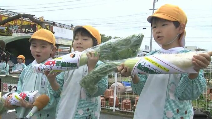 このメッセージ付きの大根を、園児たちが家に持ち帰って家族に渡します。