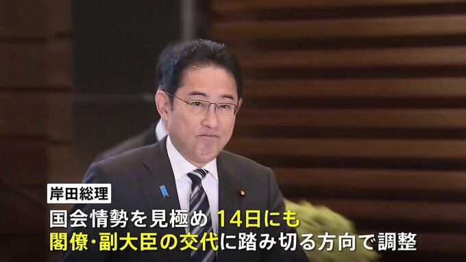自民党・安倍派の政治資金をめぐる問題を受け、岸田総理は安倍派の閣僚4人を交代させる人事を14日にも行う方向で調整に入っています。複数の政府・与党関係者によりますと、岸田総理は松野官房長官ら安倍派の閣僚4…