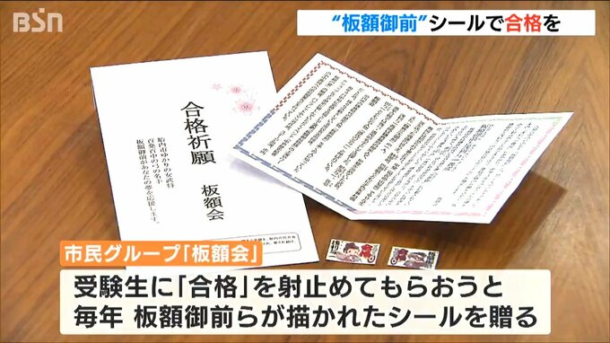 合格祈願シールは胎内市の中学3年生194人と浅利与一ゆかりの山梨県にある2つの自治体の中学3年生にも贈られます。また、胎内市の乙宝寺でも希望者に配布されるということです。