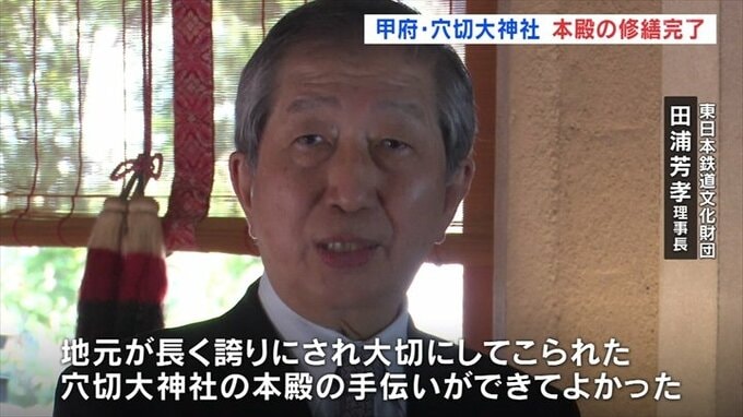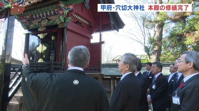国の重要文化財である甲府市の穴切大神社の本殿がJR東日本が関係する財団の支援で修繕されました。