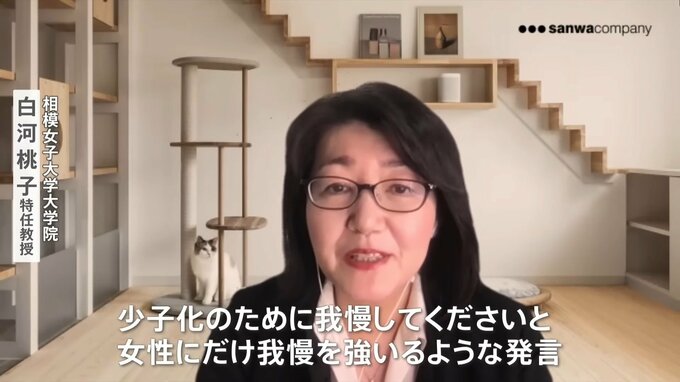 「少子化のために我慢してくださいと女性にだけ我慢を強いるような発言に見える。結婚に限らずパートナーを持つ持たない、産む産まない、これらは人権に関わる問題。女性個人の責任に転嫁しているところが非常に良くない発言だと思う」