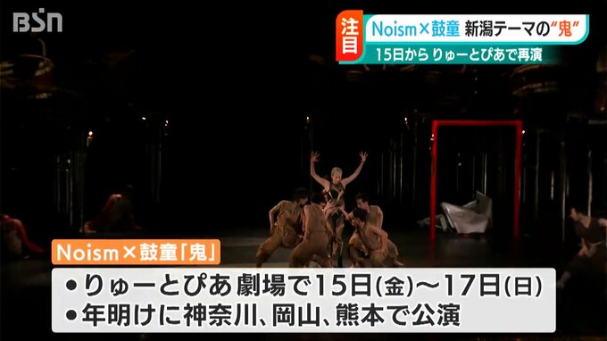 佐渡市の太鼓芸能集団「鼓童」と、その音楽に合わせて踊るりゅーとぴあ専属舞踊団「Noism(ノイズム)」が、去年の夏に初めて共演した『鬼』が好評で、このたび全国で再演されることになったものです。