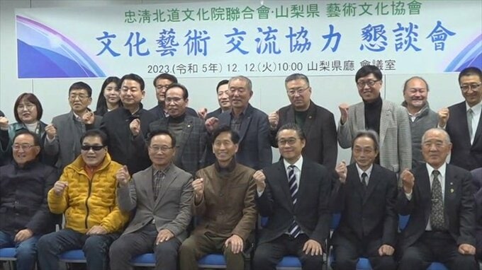 山梨県の姉妹都市、韓国・忠清北道の文化芸術団体が県庁を訪れ、継続的に交流したいと要望しました。県と韓国の忠清北道は1992年に姉妹都市を締結しています。12日は忠清北道の11の市と群にある文化芸術団体の関係…