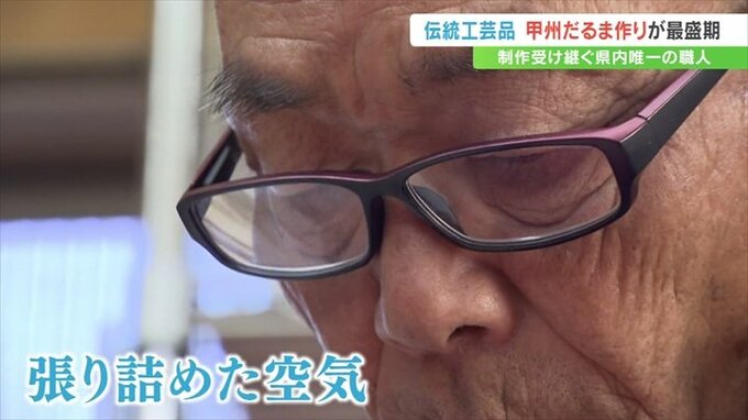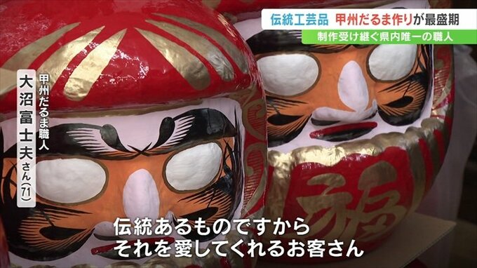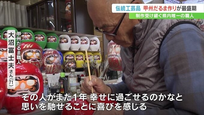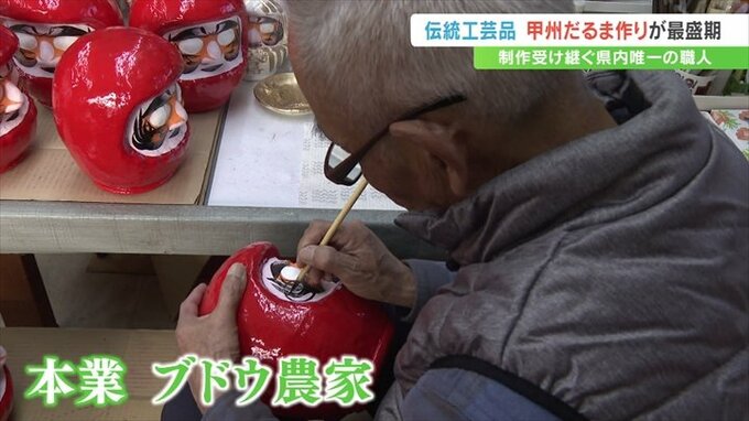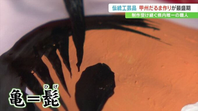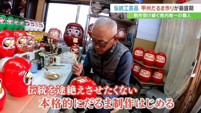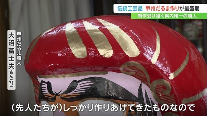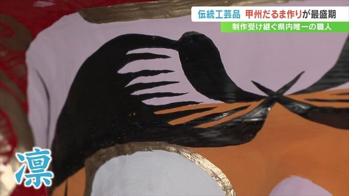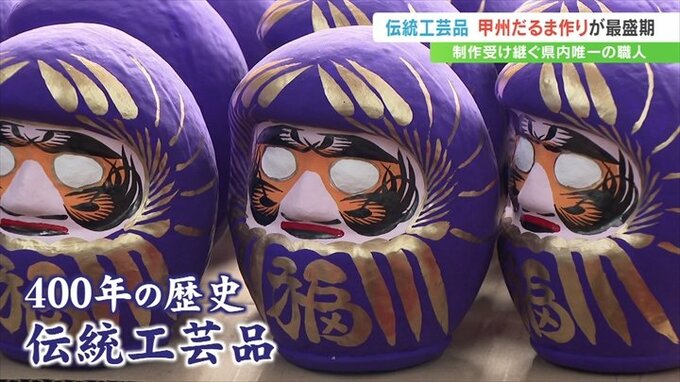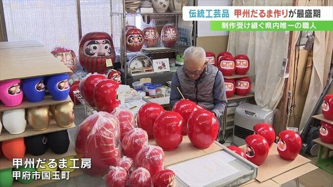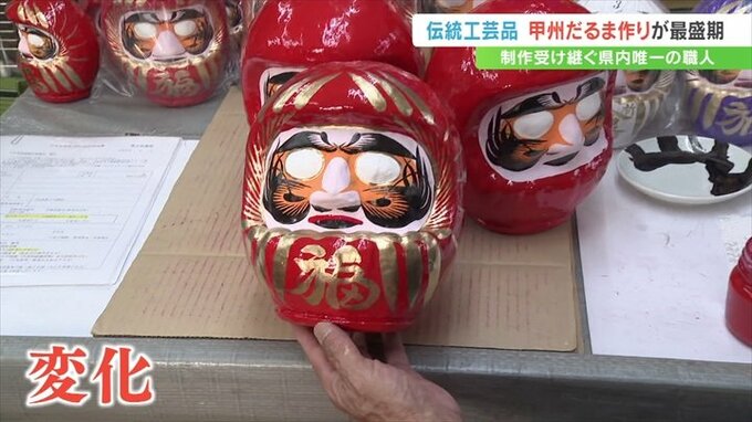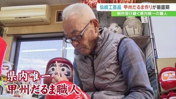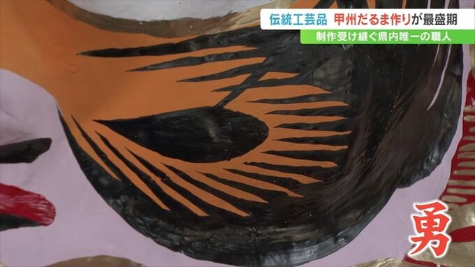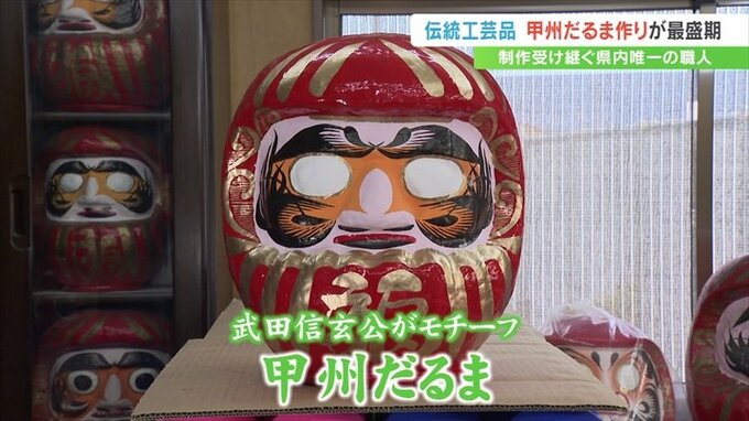 通常のものより勇ましい表情が特徴で、武田信玄公をモチーフにした「甲州だるま」。甲府市の工房でこの「甲州だるま」づくりが最盛期を迎えています。