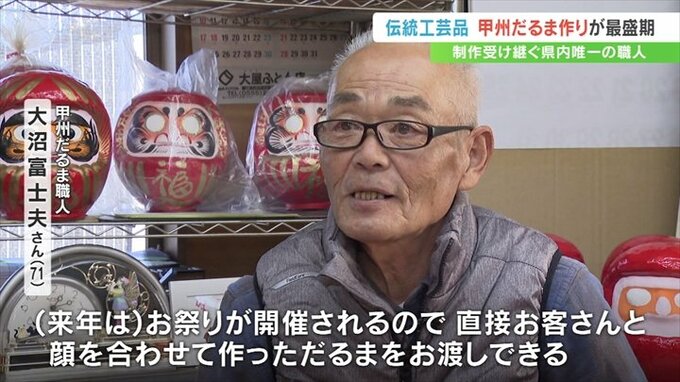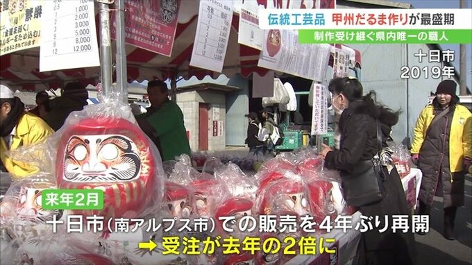 2024年2月、山梨県南アルプス市の祭り=十日市での販売が4年ぶりに再開されることもあり、だるまの受注が2022年の2倍に増えたということです。