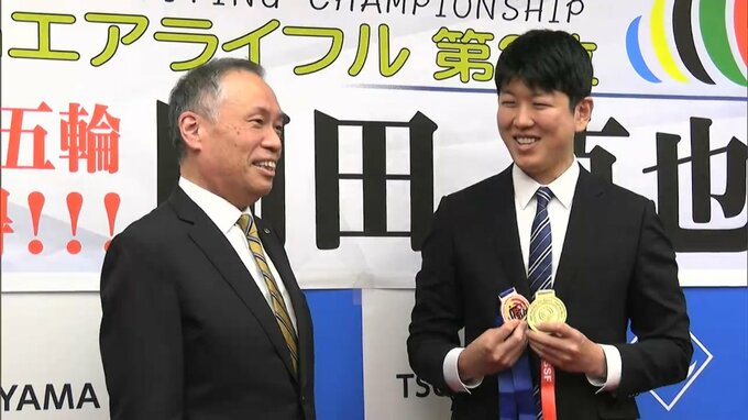 また10月に韓国で行われたアジア選手権男子10メートルエアライフルで銅メダルを獲得し、来年7月のパリ五輪への出場が事実上内定したことなどを谷口市長に報告しました。