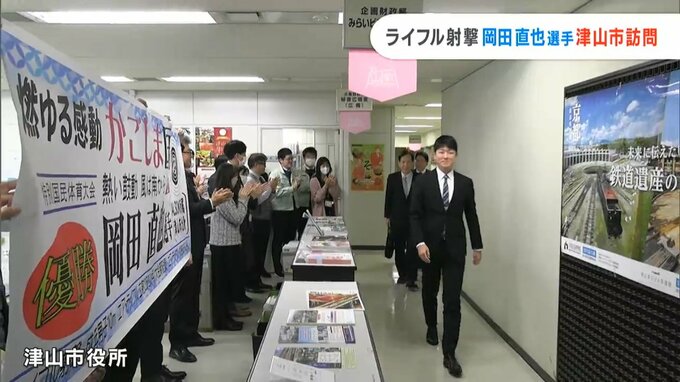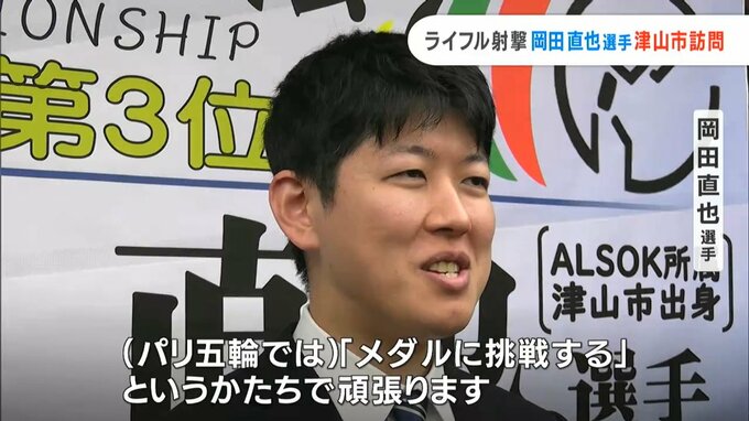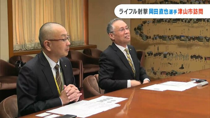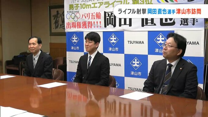 来年のパリ五輪の出場が事実上内定している、岡山県津山市出身でライフル射撃の岡田直也選手が、津山市役所を表敬訪問しました。