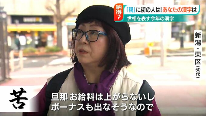 年末の風物詩『今年の漢字』が12日発表され、最も応募総数が多かった「税」が選ばれました。この「税」という文字の受け止めは…
