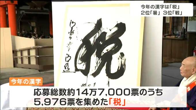 「今年の漢字」は、12日午後2時に京都の清水寺で発表されました。応募総数およそ14万7000票のうち、5976票を集めた「税」という漢字に決まりました。