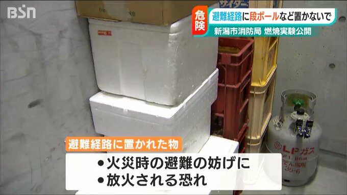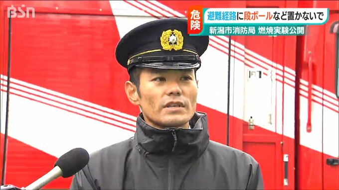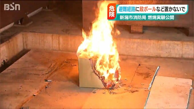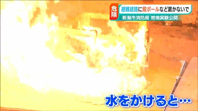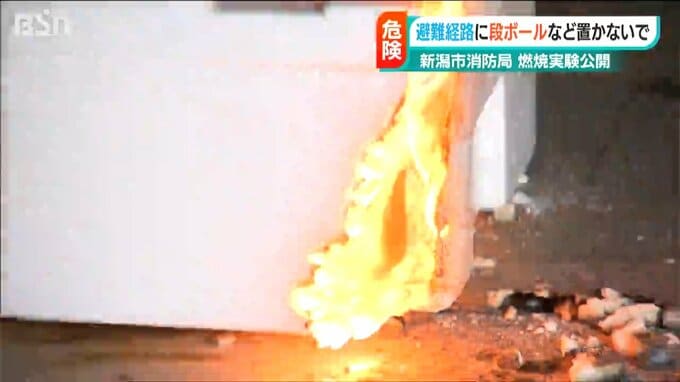 その危険性を知ってもらおうと、新潟市消防局で12日に燃焼実験が行われました。