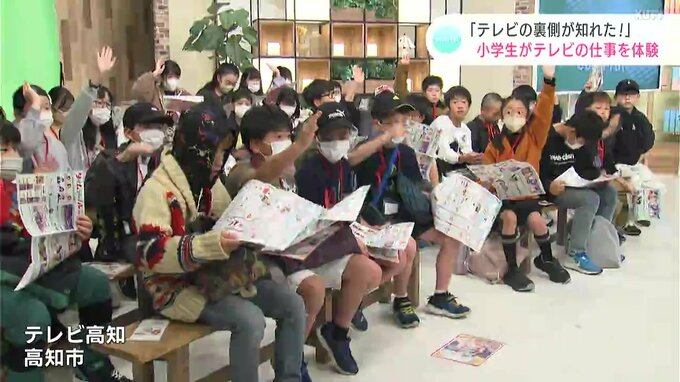 高知市の小学生がテレビ高知を訪れ、からふるのスタジオなどを見学してニュースがどのように作られるのかなどについて学びを深めました。