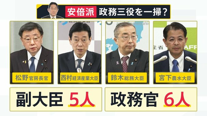 そういう中で、岸田総理としては官房長官だけではなく、安倍派の一掃を考えている。松野官房長官、西村経済産業大臣、鈴木政務大臣、宮下農水大臣など副大臣5人や政務官6人を含めて、最大派閥安倍派の人事を大きく変えようとしていますが、今、こんなことができるんですか。