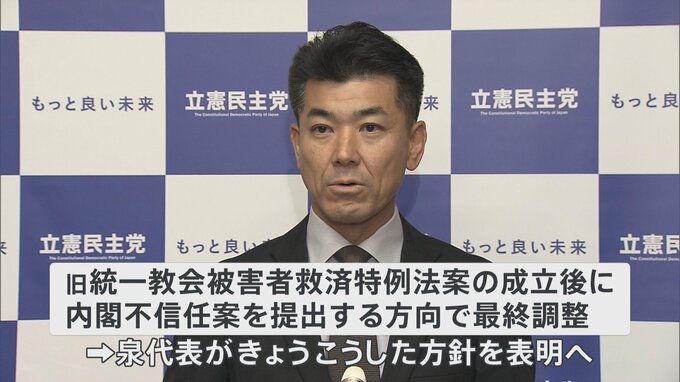 臨時国会はきょう閉幕します。立憲民主党は、岸田内閣に対する不信任決議案を提出する方向で最終調整していて、きょう、泉代表が表明します。立憲民主党はきのう、緊急で執行役員会を開き、岸田内閣に対する不信任…