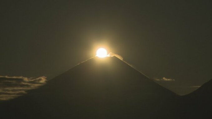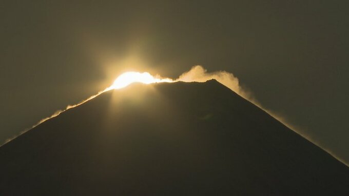 そして午前7時15分ごろ。富士山頂から朝日がゆっくりと姿を現しました。