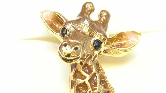 岡山市北区の「池田動物園」を応援しようと、可愛らしいキリンのブローチがつくられました。地元百貨店の開店50周年の記念の一品です。つぶらな瞳が語りかけてくるようなキリンのブローチ。 合金と樹脂を使い、目…