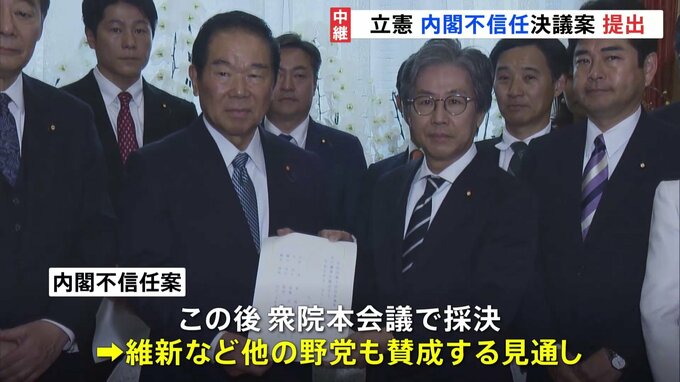 自民党・安倍派の政治資金パーティーの問題を受け、立憲民主党はさきほど、岸田内閣に対する内閣不信任決議案を提出しました。国会から中継です。立憲民主党は当初、内閣不信任案の提出については慎重な考えでした…