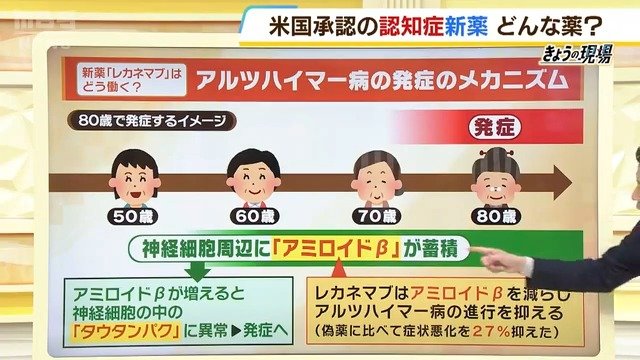 (花田一志医師)病気にアミロイドβが大きく関与しているのは間違いありませんから、そこを減らしてどうなるかっていうのを、これまで繰り返し試してきました。今回「レカネマブ」に一定の効果があるということで承認されたという経緯があります。