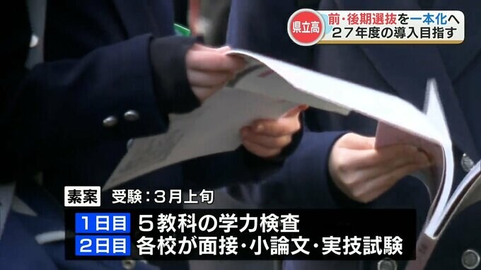 そこで県は、これらを一本化する新たな入試制度の素案を公表しました。