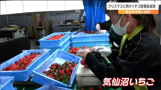 クリスマスシーズンに向けて、ケーキを彩るイチゴの収穫が宮城県気仙沼市の階上地区で、最盛期を迎えています。