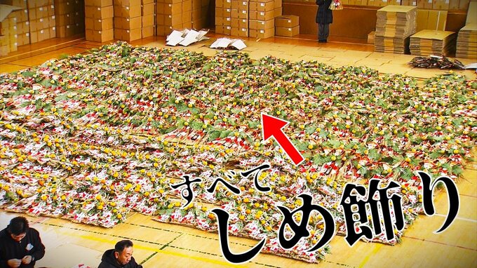 市川麻耶キャスター「段ボールがぎっしり積まれています!中に何が入っているかというと…しめ飾りです!床一面にしめ飾りが並んでいます!」新年を前に製作がピークを迎えているのは歳神様を迎える目印となる「し…