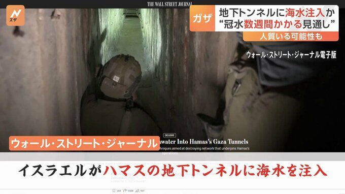 イスラエル軍がガザでイスラム組織ハマスの地下トンネル網に海水の注入を始めたと、アメリカメディアが報じました。一方、ガザ南部の病院で先週まで活動していた日本人医師が停戦を訴えました。イスラエル軍の攻撃…