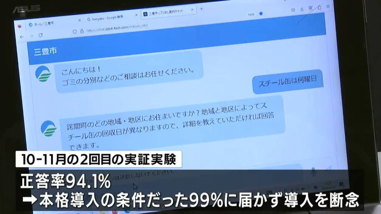 香川県三豊市は、今年6月から東京大学大学院と実証実験を進めてきた「チャットGPT」を使ったゴミ出し案内の導入を断念すると発表しました。