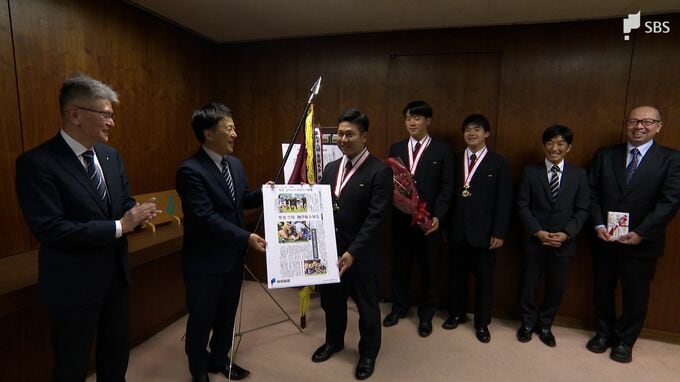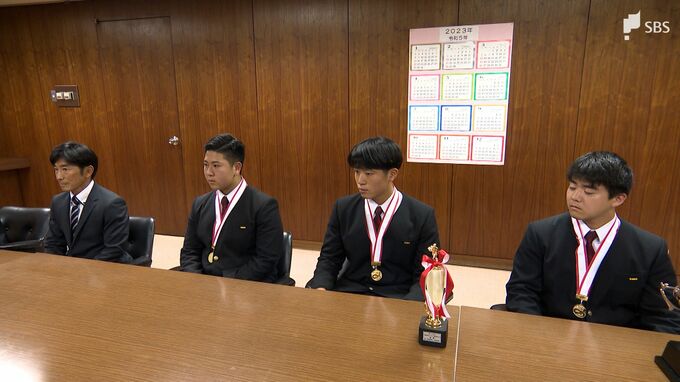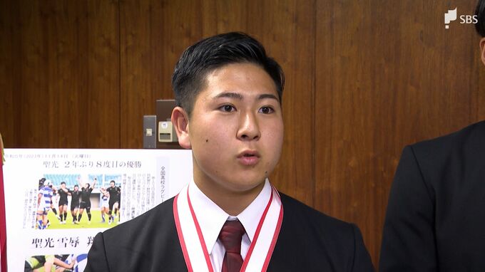 花園に出場する静岡聖光学院・ラグビー部が12月13日、SBS静岡新聞を訪れ、健闘を誓いました。