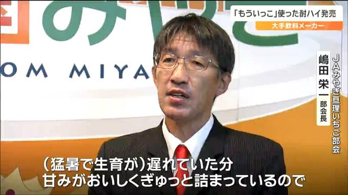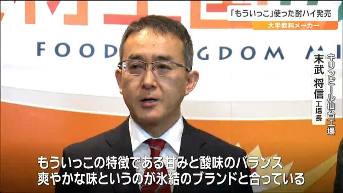 キリンビール仙台工場の末武将信工場長や、イチゴの生産者らが県庁を訪ね、村井知事に「キリン氷結宮城県産いちごもういっこ」の発売を報告しました。この酎ハイは、亘理町などで生産されているイチゴ品種「もういっこ」の果汁が使われています。