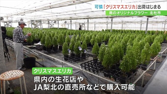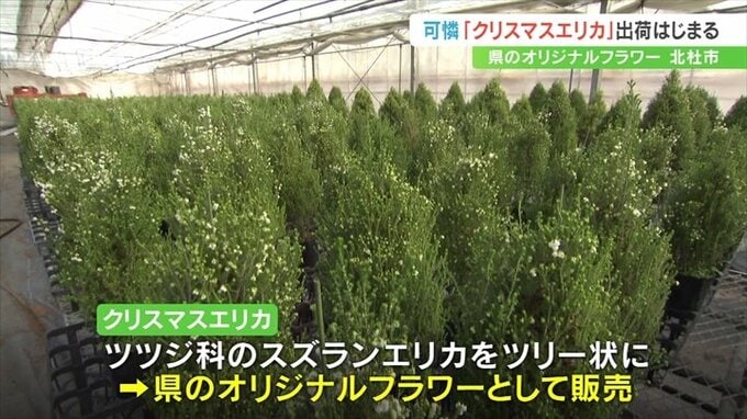 クリスマスエリカはツツジ科のスズランエリカをツリー状に仕立てたもので、県のオリジナルフラワーとして販売されています。