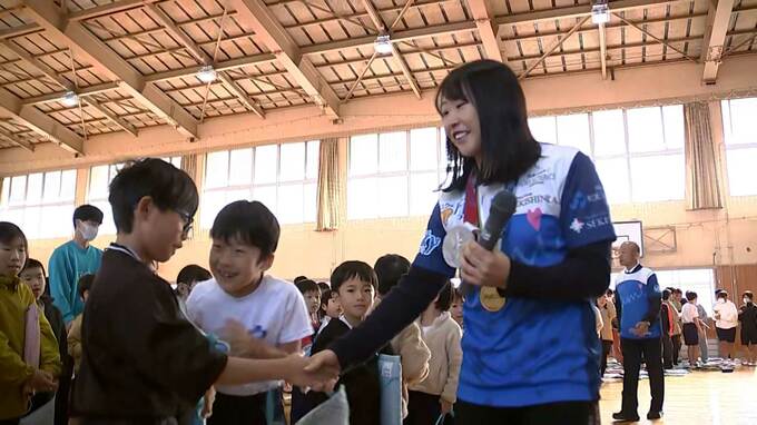 2021年東京五輪自転車トラック種目女子オムニアムで銀メダルを獲得した梶原悠未(26、TEAM Yumi)が14 日、拠点に置く静岡県伊豆の国市立大仁北小学校を訪問し、全校児童238人の前で、「夢に向かって楽しみながら挑む」をテーマに熱弁を振るった。静岡県内の小学生を対象に講演会を開いたのは今回が初めて。