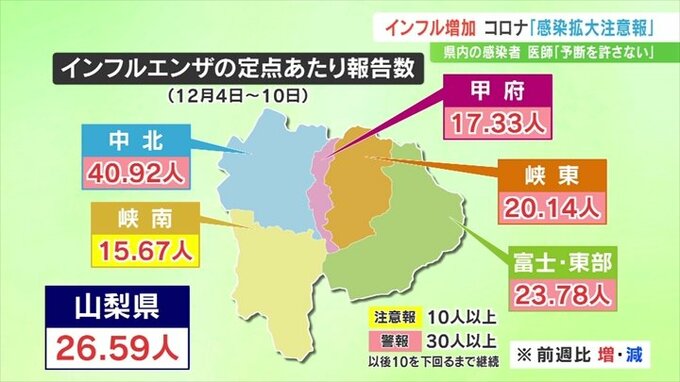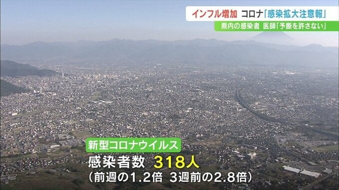 さらに新型コロナウイルスも感染が広がっていて山梨県は14日、新型コロナの「感染拡大注意報」を出しました。