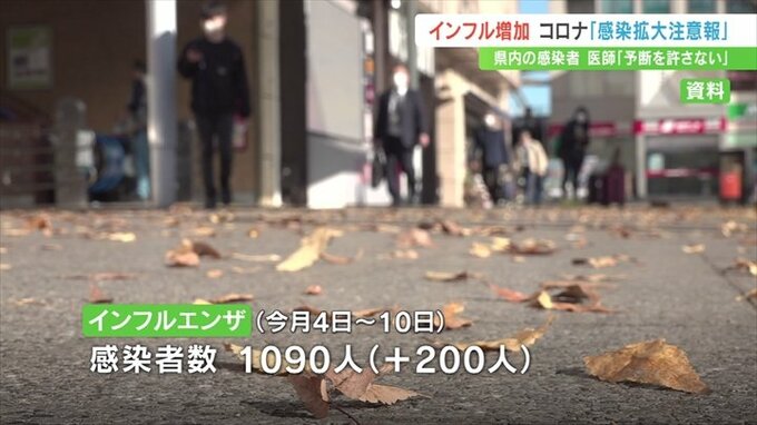 12月10日までの1週間に県内41の定点医療機関から報告があったインフルエンザの感染者数は1090人で前の週より200人増え、2週ぶりに増加しました。