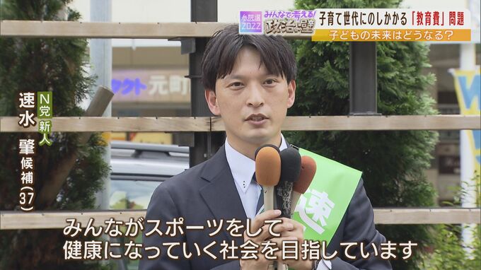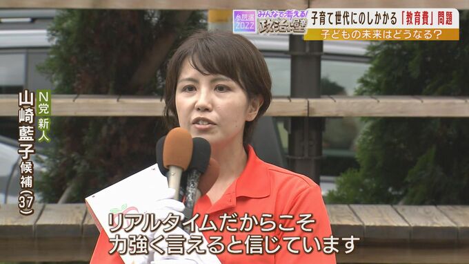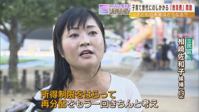 立憲民主党の新人・相崎佐和子さん(49)は、「給食費や高校授業料を所得制限無しで無償化したい」と訴えます。