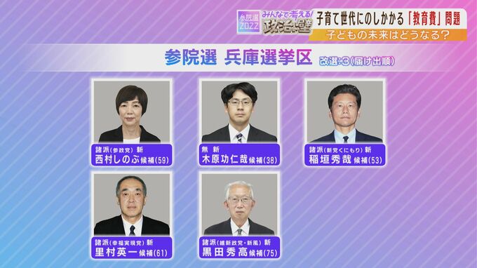 こうした声に参院選の候補者たちはどう応えていくのか。兵庫選挙区は改選3議席に対して過去最多の13人が立候補しています。