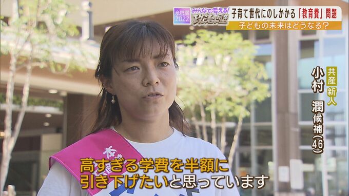 共産党の新人・小村潤さん(46)は、「専門学校や大学など高等教育の学費の引き下げを進めたい」と訴えます。