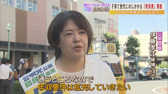 公明党の現職・伊藤孝江さん(54)は、「幼児から大学までのトータルプランを策定し支援の充実」を目指します。